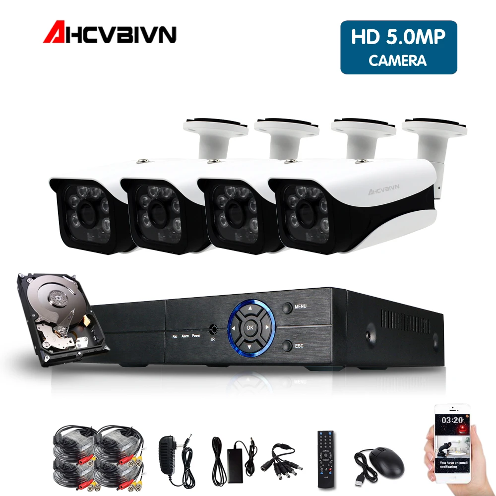 4CH 5MP AHD DVR Kit CCTV Camera System 4PCS 5.0MP Security Camera IP66 Outdoor Video Surveillance System APP View