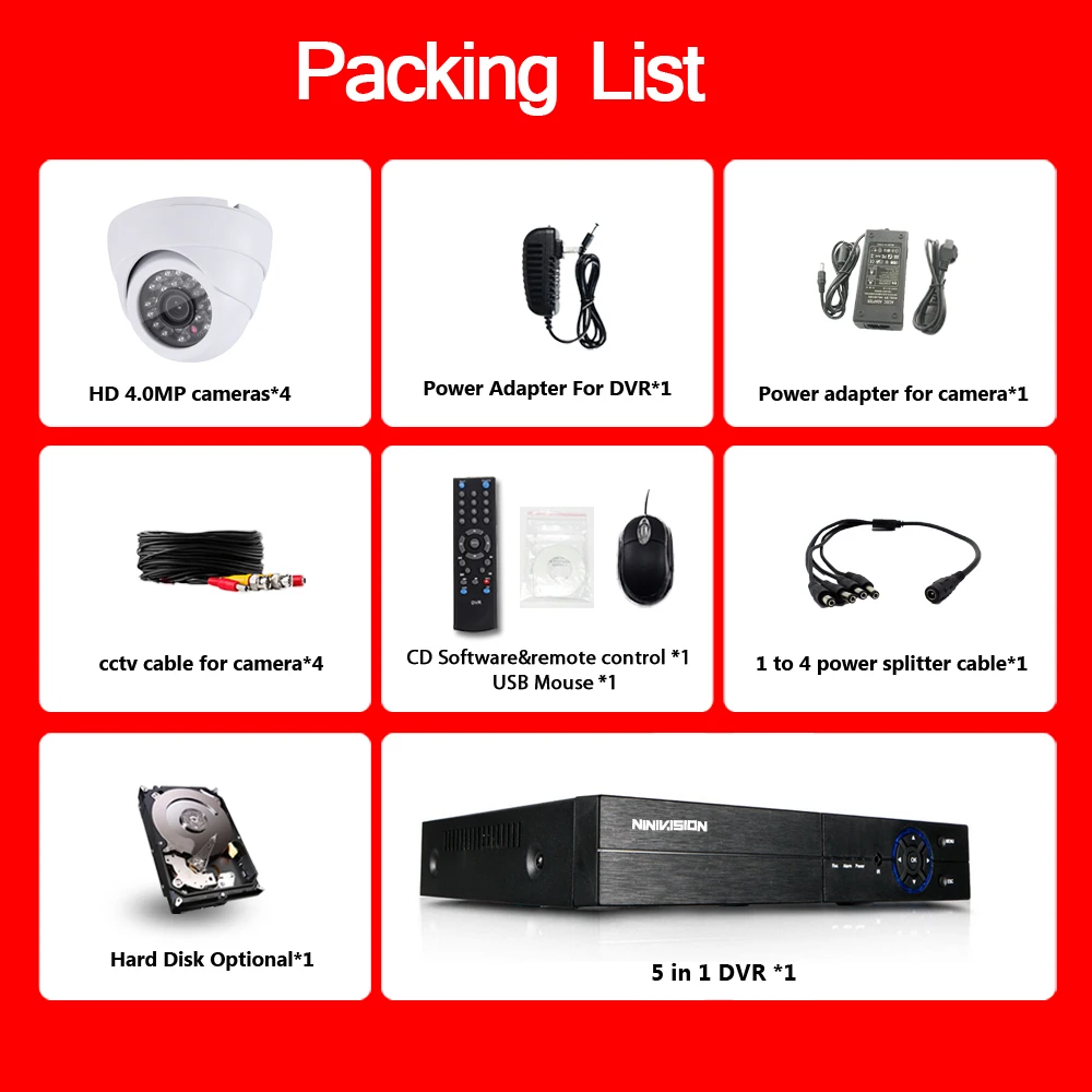 Addition Information of 4ch Super HD 4MP CCTV Camera H.264 Video Recorder DVR AHD Home indoor Security Camera System Kit Vi