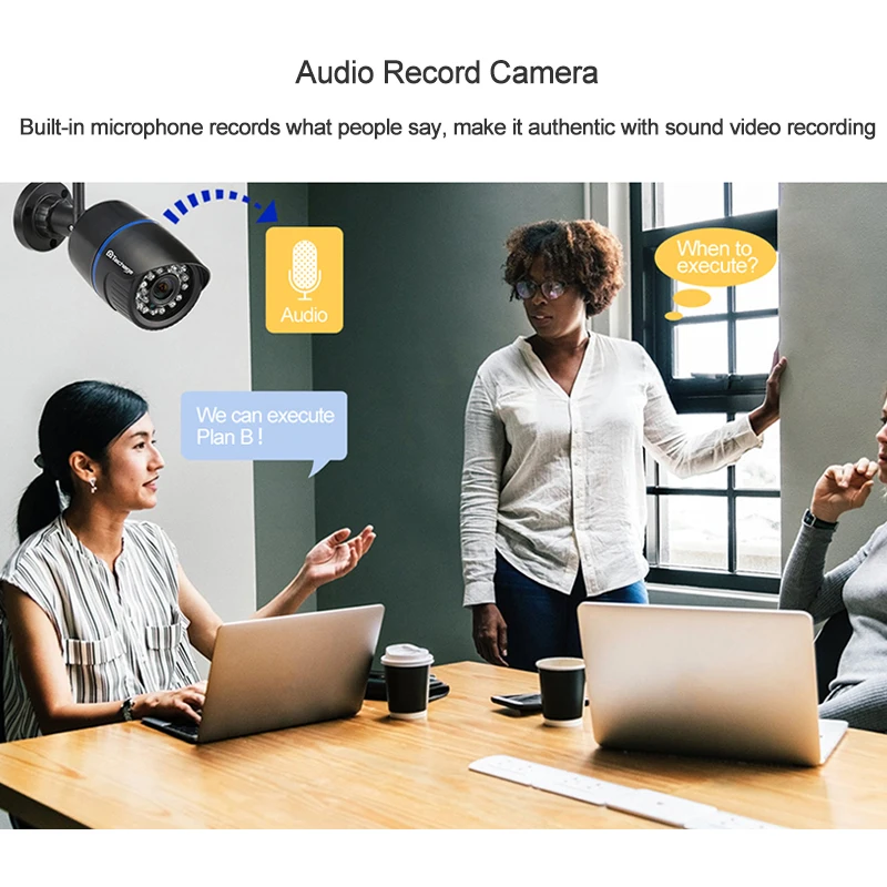 Techage H.265 1080P Audio Sound POE IP Camera 2MP Waterproof Outdoor Video CCTV Security Surveillance ONVIF for POE NVR System